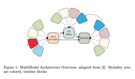 Key Takeaway: Key ideas are introduced in building neural networks for multimodal tasks: 1. Modality nets are small subnetworks that are composed together in the general architecture with the goal of mapping different input modalities to a unified latent representation. 2. Different computational blocks(CNN layers, mixture of experts, etc) are key to good performance on various tasks. 3. An Encoder Decoder architecture is introduced, a specific case of a powerful architectural pattern demonstrated by the approach outlined in theLudwig paper outlined in later sections